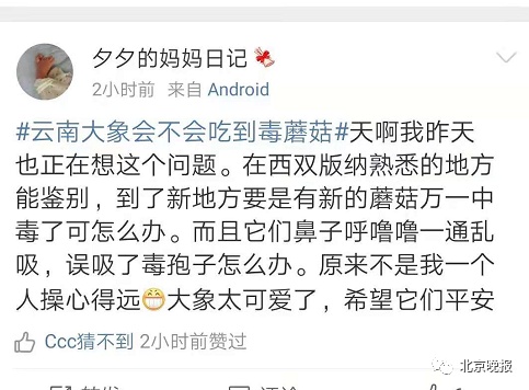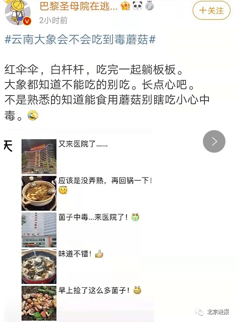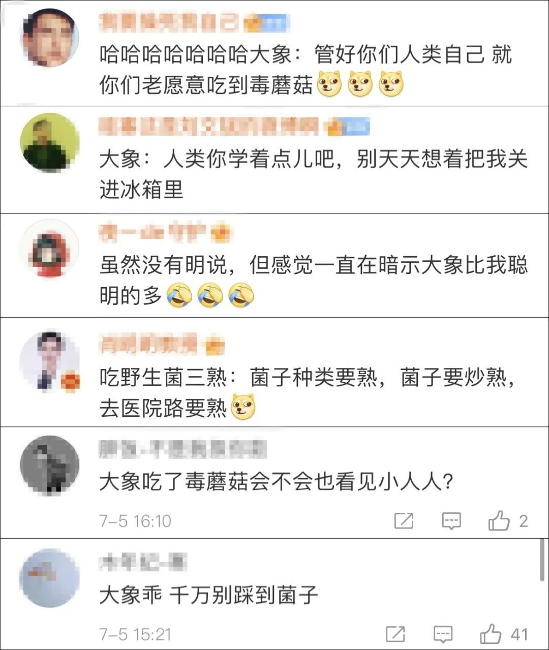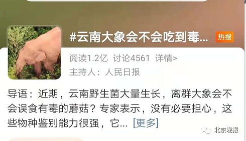云南北移亚洲象群安全防范工作省级指挥部专家组成员沈庆仲表示,大象采食蘑菇这个问题,还没有拍到过照片,事实上也没有必要担心,因为大象对于这些物种的验别能力很强。