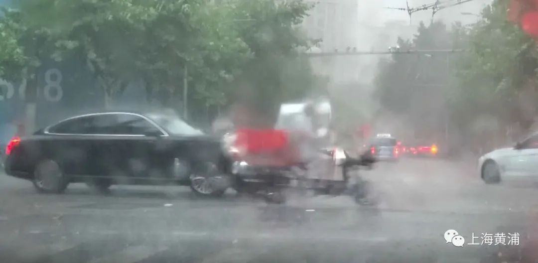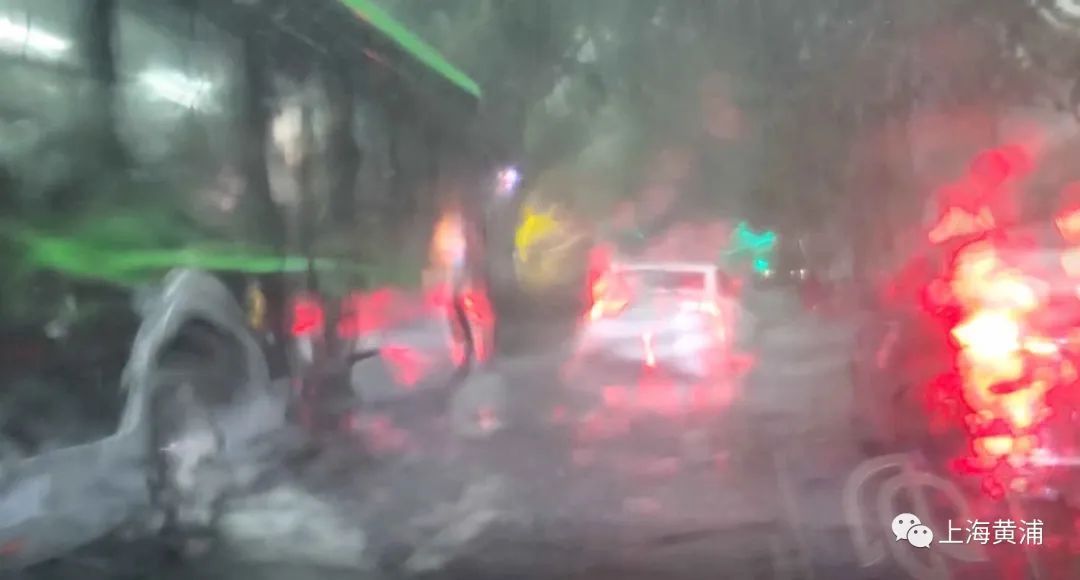 重庆南路上行驶的车辆一下子放慢了速度,有的还打开了双闪,缓慢前行,就算将雨刷开到最大,也很难看清前方。