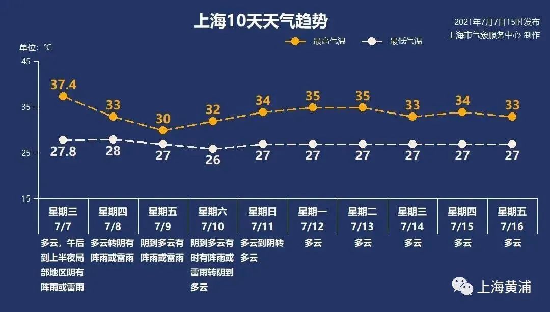 今天到本周六(10日),由于副热带高压南落,上海最高气温将回落至30-33℃。