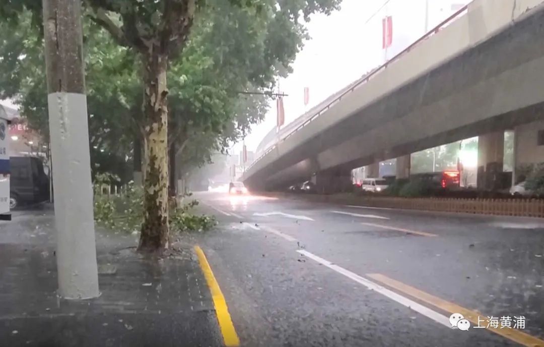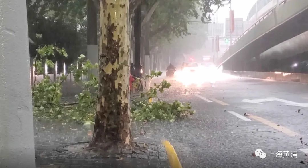 十分钟后,附近的建国东路开始积水,汽车自行车驶过,溅起一阵水花。伴随着大雨的还有大风,一些树枝在雨水共同的打压下已经折断,掉落在路边。