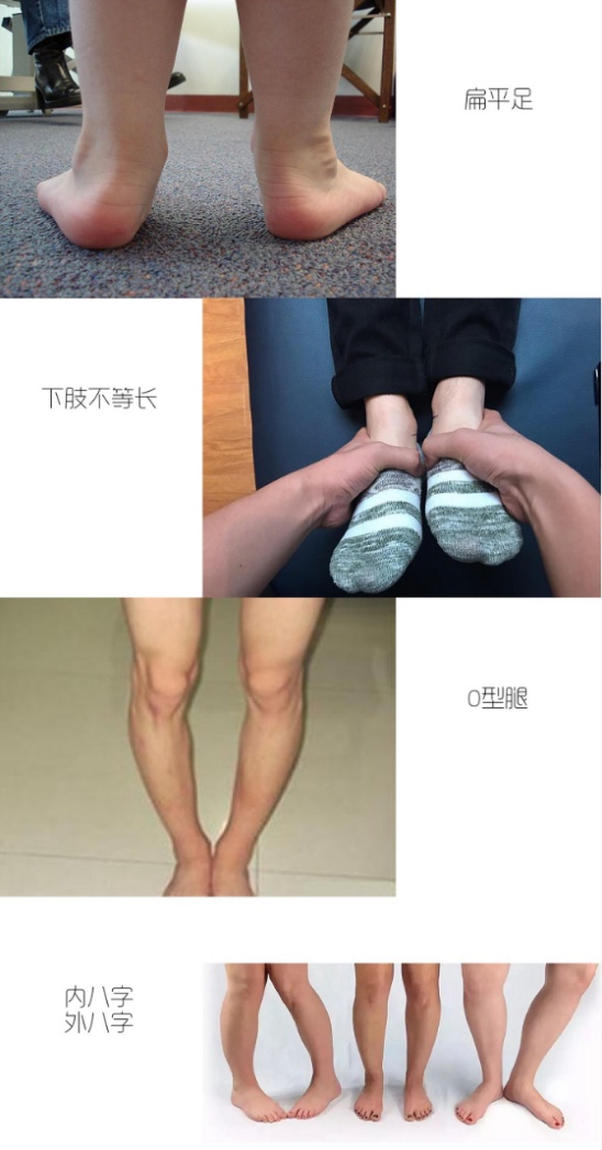 此外,青少年步态异常也很常见,常见扁平足、高弓足、内外八字、下肢不等长等足踝生物力学异常。人体的每一次走、跑、跳等动作均依赖于足踝完成,若足踝功能异常,导致人体的减震能力的下降和下肢力线结构异常,导致脊柱侧弯、关节退行性改变、骨盆旋转、肩颈疼痛、习惯性下肢运动损伤等问题。以最常见的扁平足为例,可以导致拇外翻、胫骨内旋,股骨内旋进而引起骨盆前倾,腰椎前弯增加,导致腰椎间盘突出等问题。所以“足”以影响全身,青少年足部问题不容忽视。