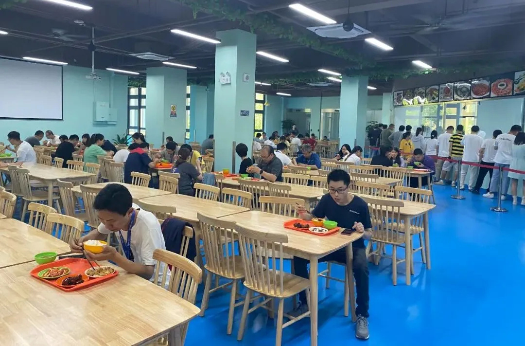 据悉,该餐厅6月份开始试营业,营业时间从早晨6:00-晚上20:00,一日三餐均有,能同时容纳大概500人左右。一楼是早餐和面食,二楼是炒菜。同时为了更好的服务企业和员工,二楼还设有三个包间。三个包间可单独使用,也可打通成一个大包间,最多可容纳大概70-80人。