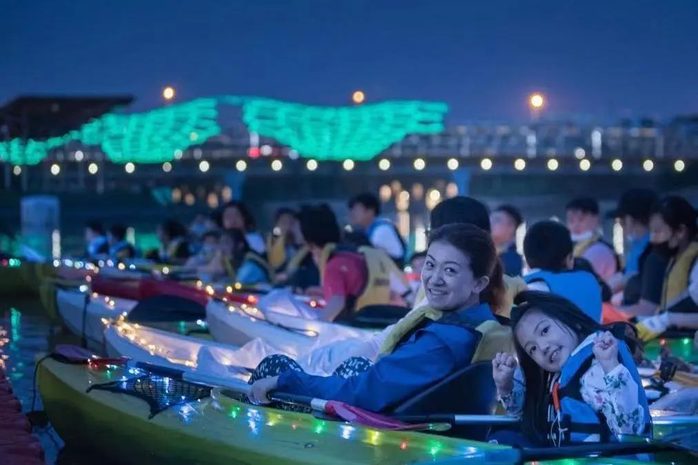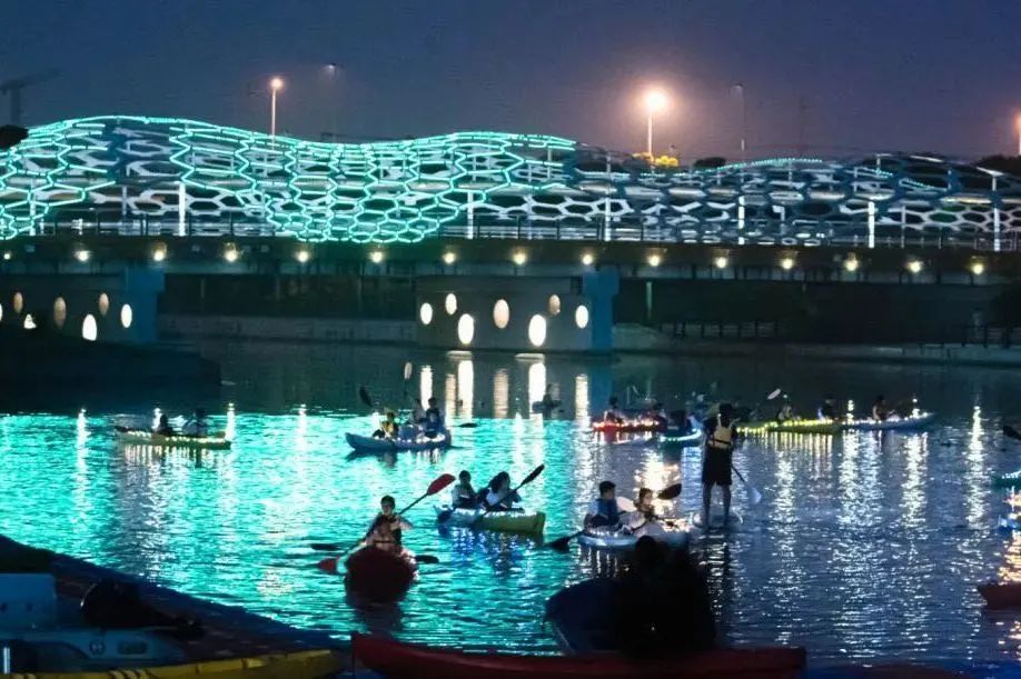 浦锦街道有一条长度约3公里的装有灯光的河道。一艘艇,两把桨,坐在艇中,荧光加夜光折射出绚烂水面,两旁河狸漫画映入眼帘。划着船欣赏城市风光,宛如阿凡达世界中的夜光盛景,少年派发光浮游的海世界。
