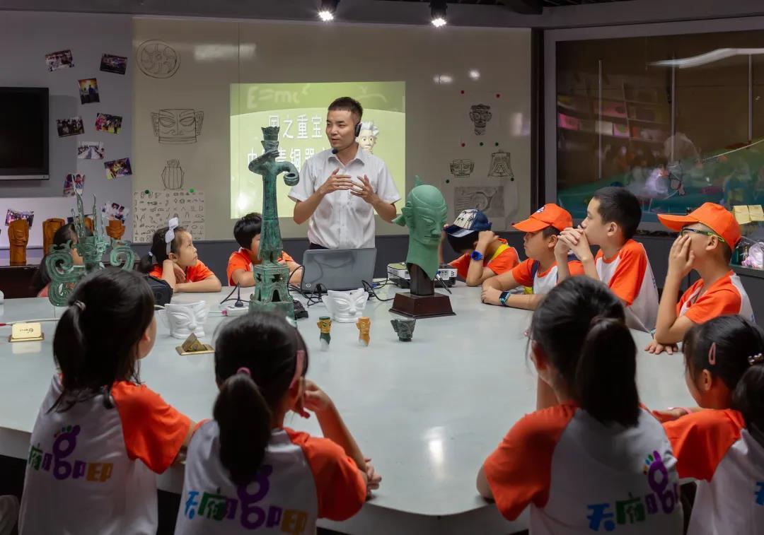 展厅导览:青少年在社教人员或讲解员的带领下,参观展厅中的三星堆青铜文物,了解其铸造工艺及精神内涵。
