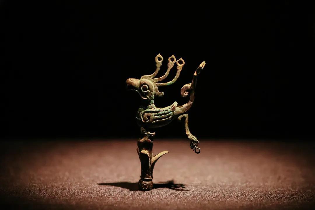 青铜器的出现是人类迈入文明时代的重要标志,而三星堆青铜器,则是中国西南地区青铜时代最典型和最高成就的代表。在“古蜀之光”展厅内,你可以看到不少来自三星堆博物馆的青铜文物。小巧精致的青铜鸟、造型独特的青铜面具,还有被称为“东方巨人”的青铜大立人像等,都展现了三星堆的青铜艺术成就。