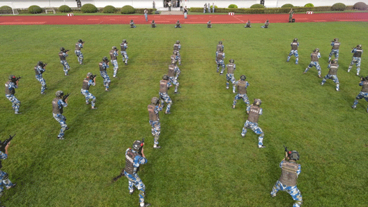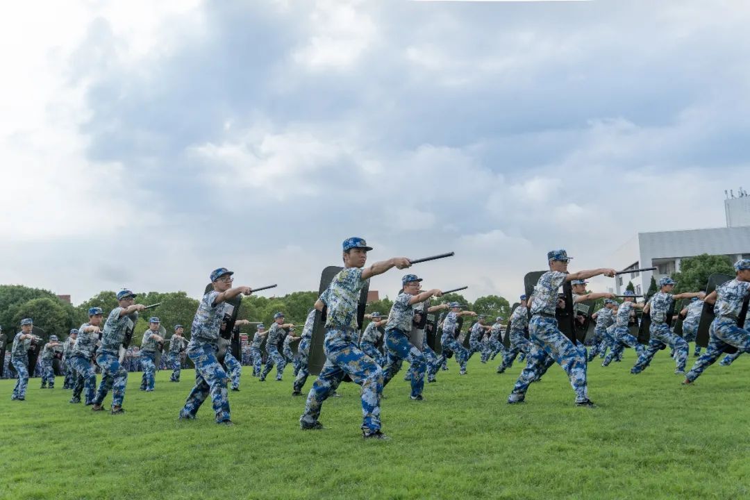 随后,“尖刀连”“先锋连”“常胜连”“猛虎连”四支特色连队分别带来刺杀操、警棍盾牌、匕首操、应急棍术等训练方阵展示。他们的动作霸气威武、虎虎生风,充分展示了交大学子的精神风貌,赢得现场掌声连连。