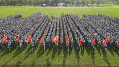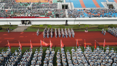 随后进行分列式表演。30支接受检阅方队精神抖擞、步伐铿锵有力,喊着嘹亮的口号走过主席台。经过14天军训历练,参训学生挺拔的军姿和整齐的队列,展现了昂扬的斗志和蓬勃的活力。