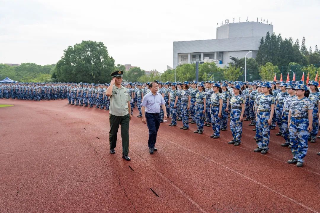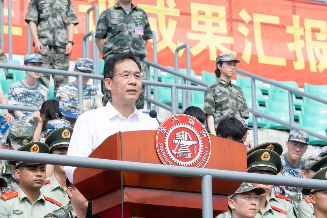 7月11日上午,上海交通大学2019级学生军训成果汇报暨总结大会在闵行校区胡法光体育场举行。武警上海总队副司令员李文胜,武警上海总队执勤第二支队政委吴方泽,徐汇区人民武装部部长郁智,武警上海总队参谋部训练处处长王东生等嘉宾,上海交通大学校长、党委副书记林忠钦,校党委常委、副校长王伟明,医学院党委副书记赵文华等学校领导,2019级学生军训团团长卓泽旺等军训团首长,部分机关部处、院系领导,全体承训教官及参训师生参加。大会由军训团政委侯士兵主持。