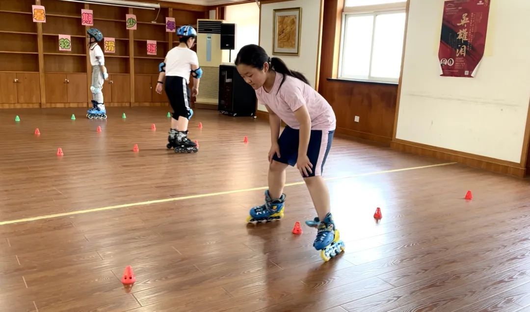 小朋友们中,有不少是零基础的“新手”。教练员手把手教授基本功,带着大家慢慢做动作。一名9岁的小“新手”说,自己一开始担心摔跤,但现在慢慢能做一些动作了,并且发现学会轮滑很酷。还有小朋友说:“老师教得很好,能学到不同的东西。”