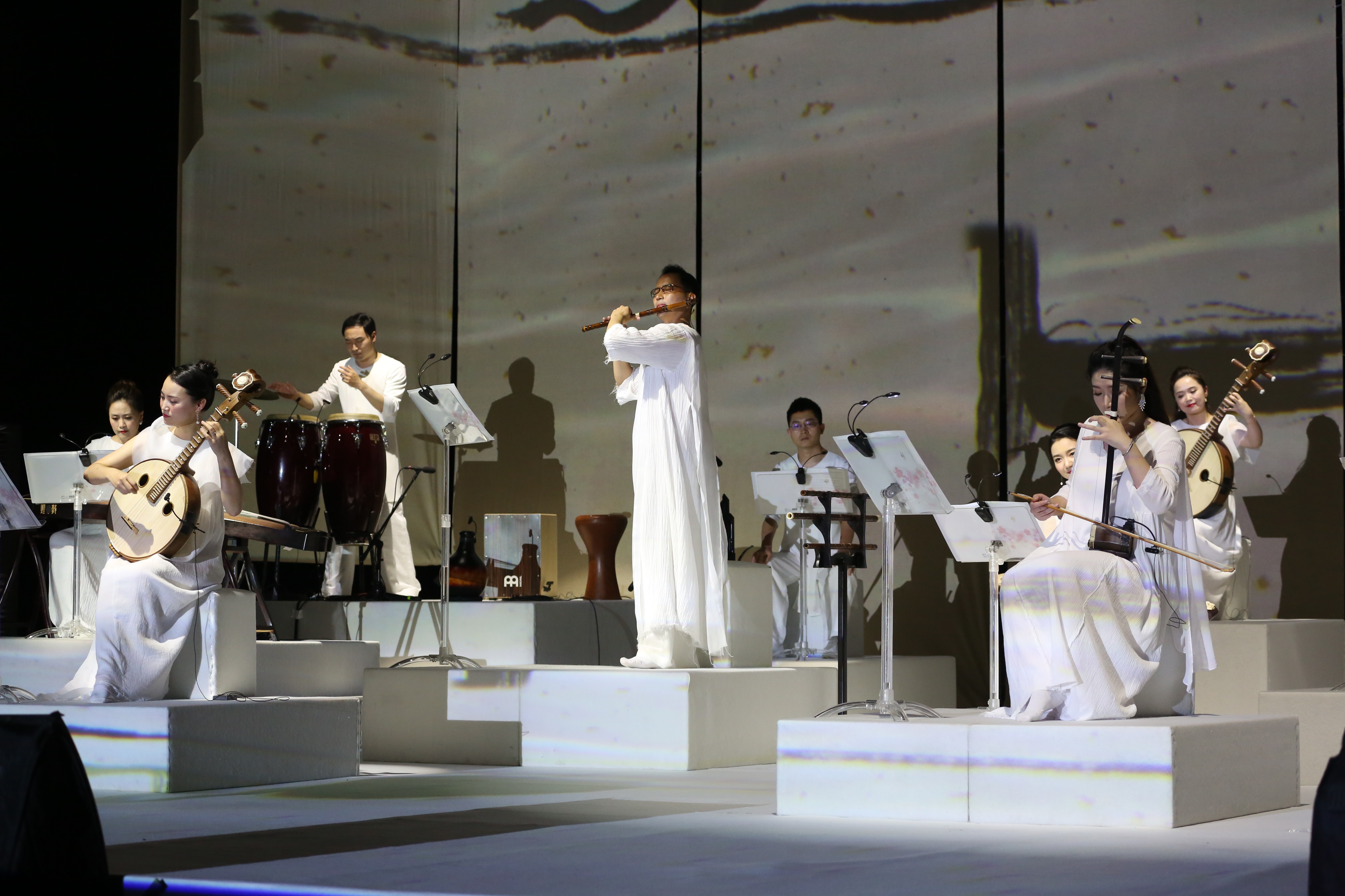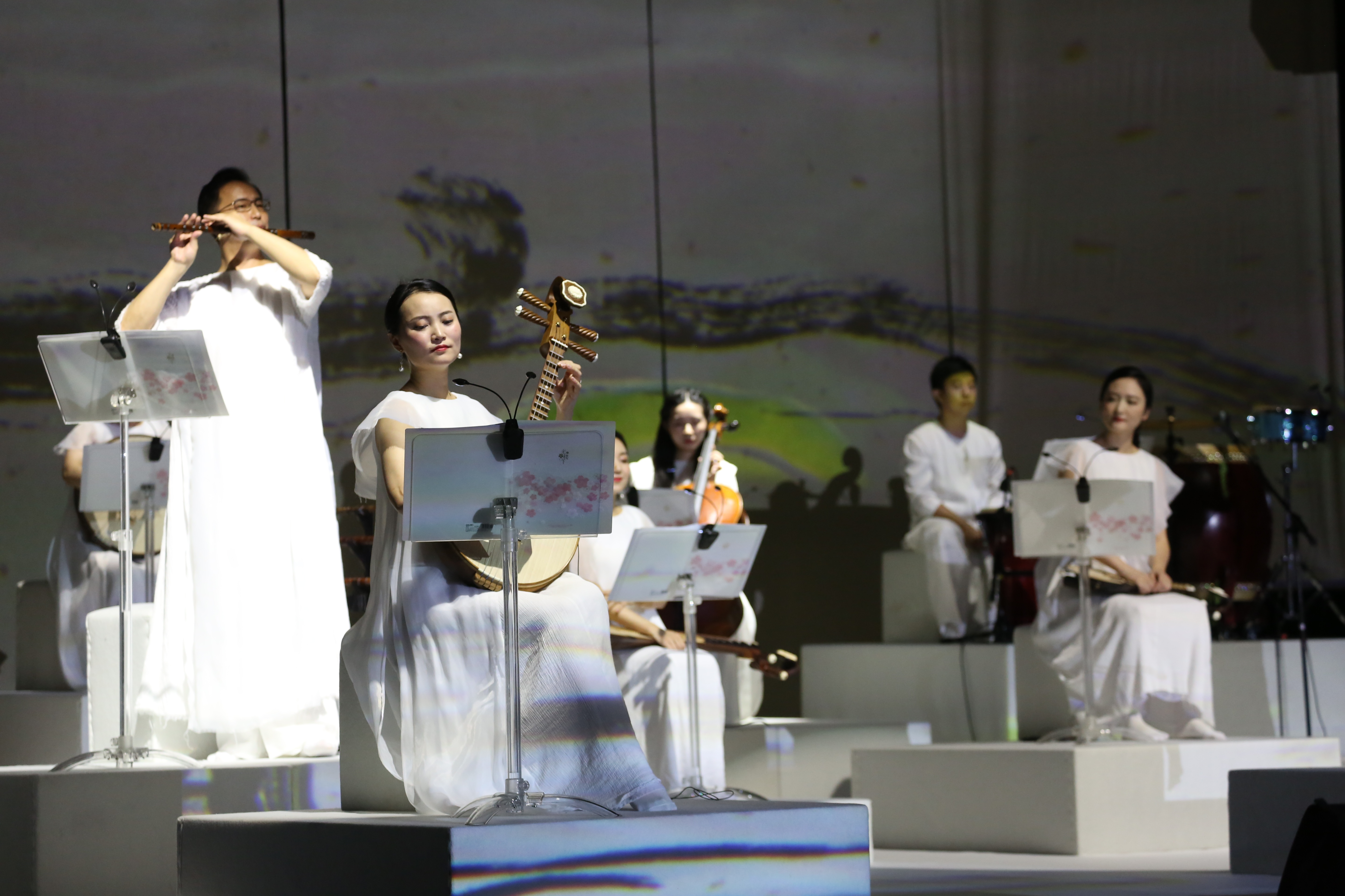 阑珊夜色中,中阮、柳琴、笛、箫、二胡、琵琶等乐器一一亮相。12位演奏家坐在舞台上,一袭白衣,高低错落,如栀子花参差绽放,好似花香扑鼻。新生代演奏家们一一演绎了“邂逅”“相恋”“离别”“花开”四个篇章,通过音乐、绘画、多媒体等艺术跨界的融合,实力展现民族音乐的青春气息和时尚质感,彰显民乐新势力。