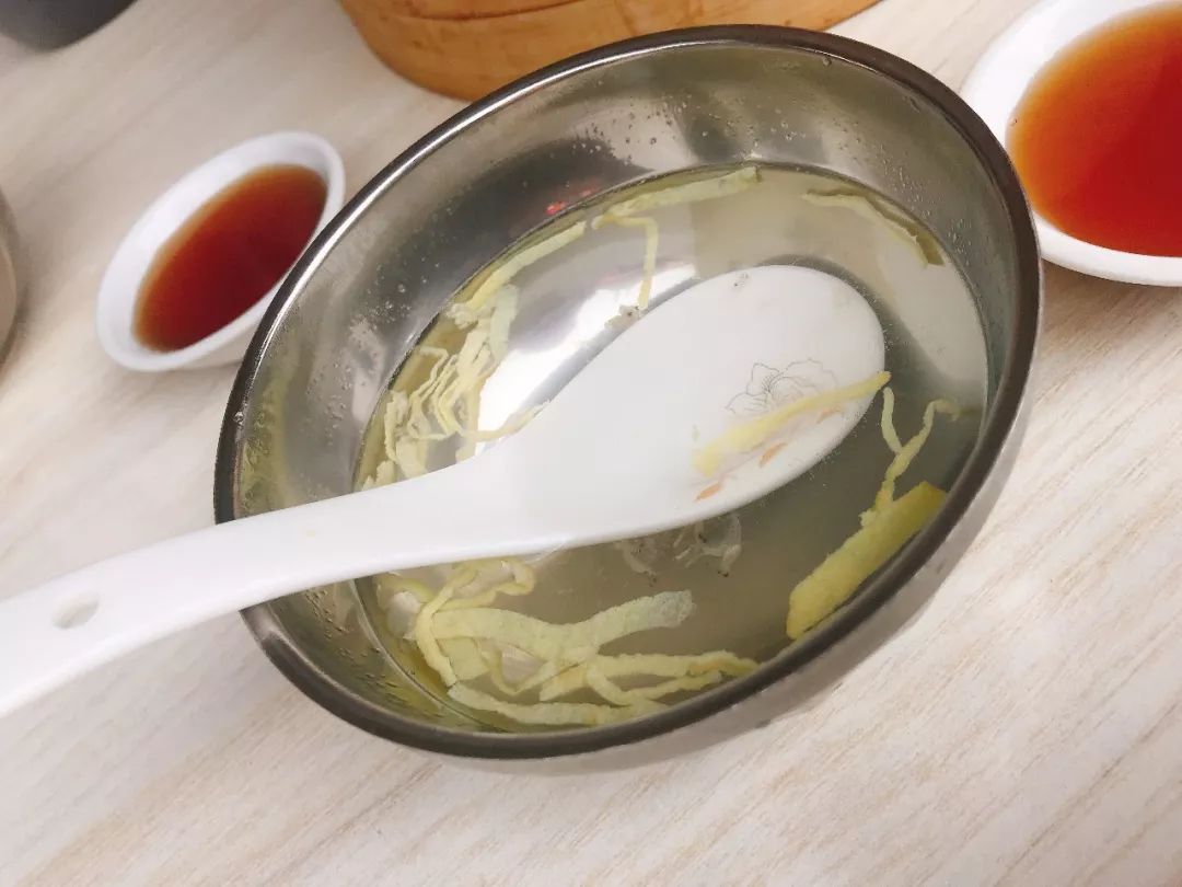 在店里点烧卖吃,老板会给堂吃的顾客端上一碗汤,有时候是紫菜汤,有时候是蛋皮汤。