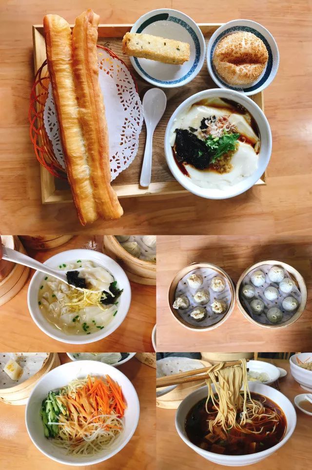 葱油拌面、小笼包、烧麦、豆腐脑、大饼、生煎······