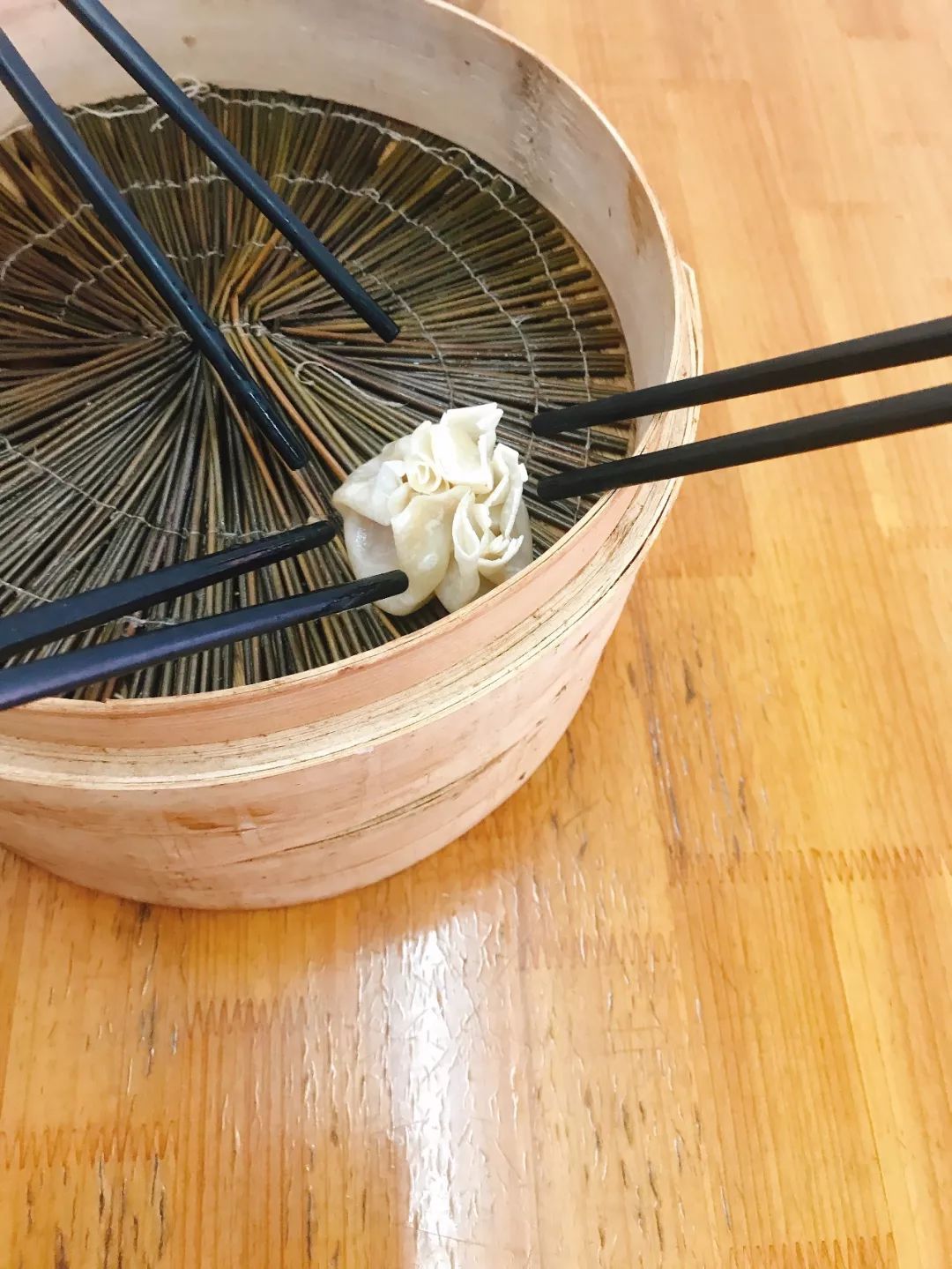 他家的小笼选用松林猪肉,主打馅料的清爽鲜香,一口一个,个个都汁水丰盛。