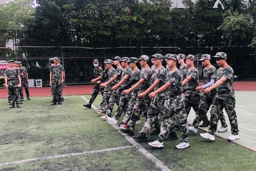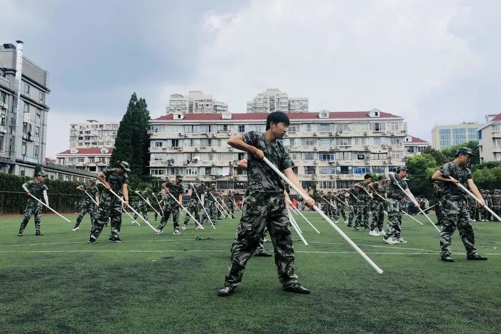 相比人数较少的排头兵方阵和旗帜方阵,在由30人组成的棍操表演方阵队伍里,整齐划一就显得格外重要。同学们稍有位置不对或者姿势不正确,就会显得整个队伍不整齐。因此,教官不断重复口令,让同学们牢牢记住每个动作的位置和幅度。