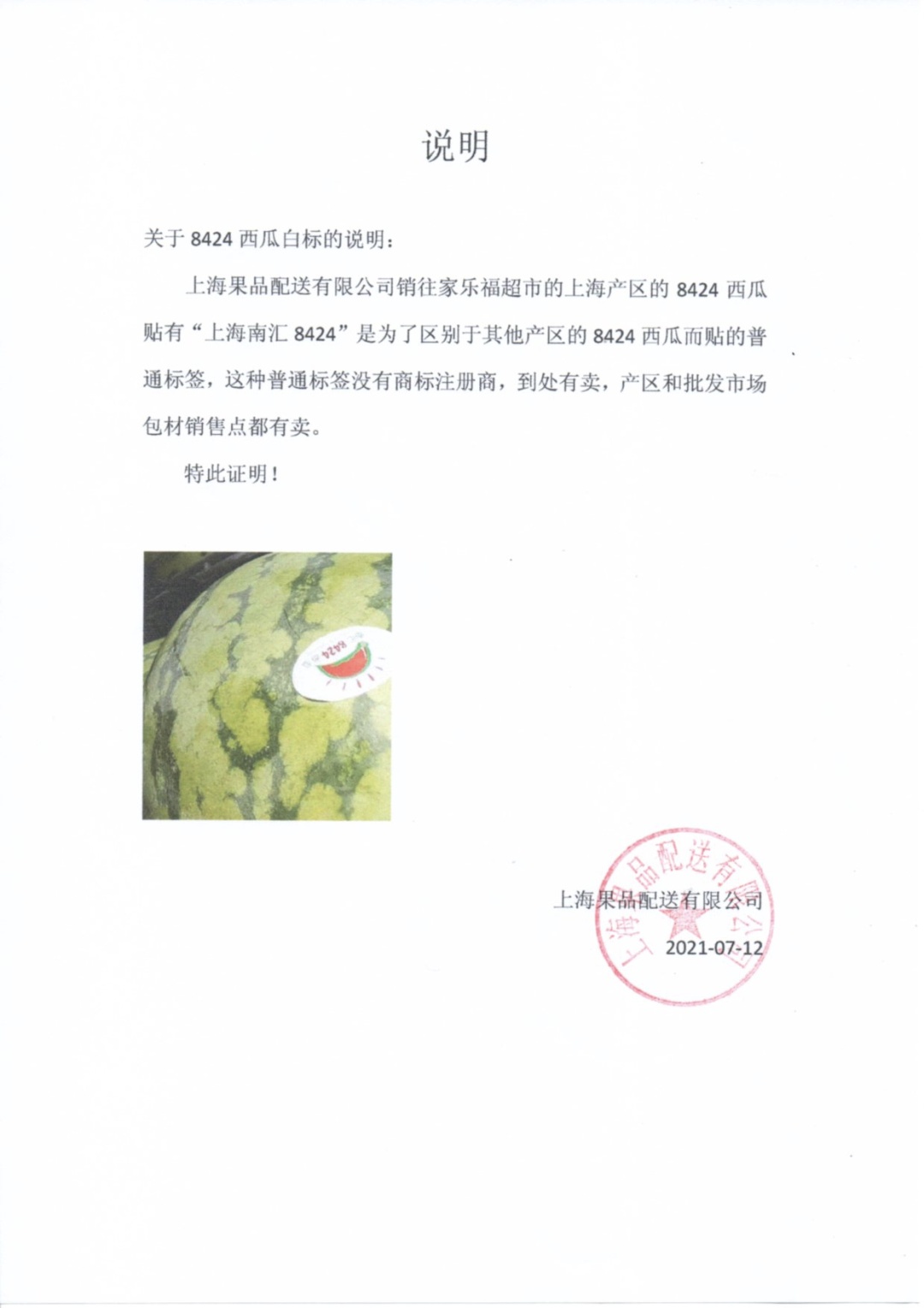 苏宁家乐福的南汇8424西瓜标示长这样