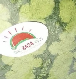 但是,这些西瓜上贴着的8424西瓜标示与消费者在上海发布公众号里看到的商标标示有些不一样