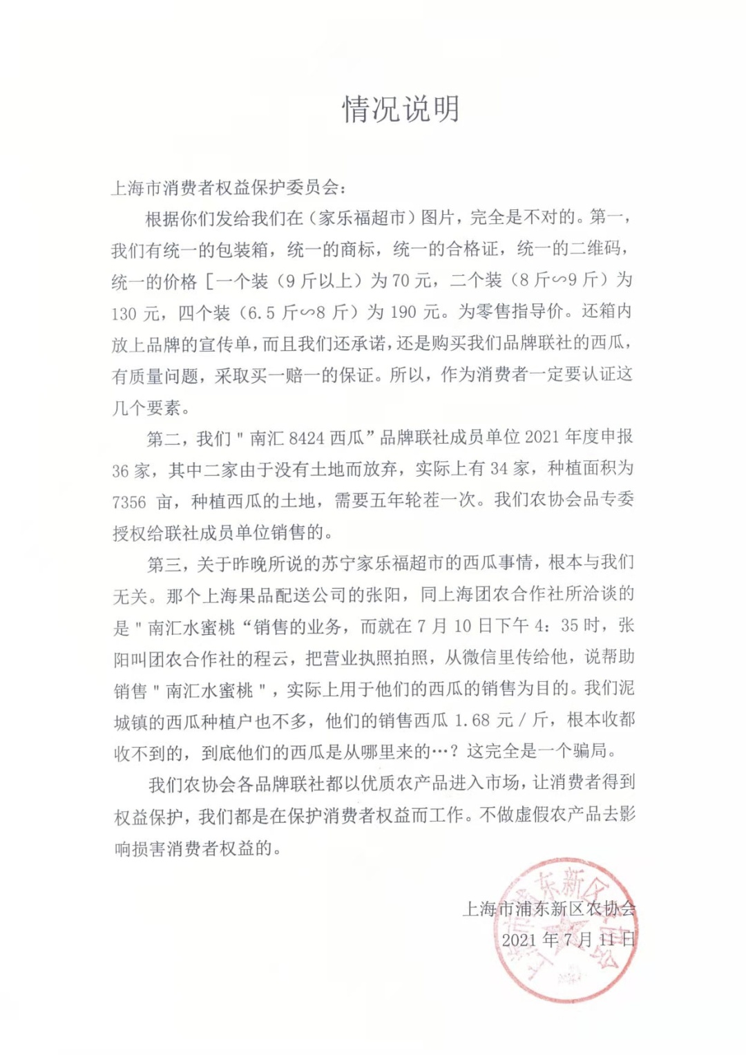 几天前,有吃瓜群众向消保委反映,看到苏宁家乐福有1.68元的8424西瓜出售(此前报道:@苏宁家乐福,你卖的南汇8424西瓜是真的吗)。