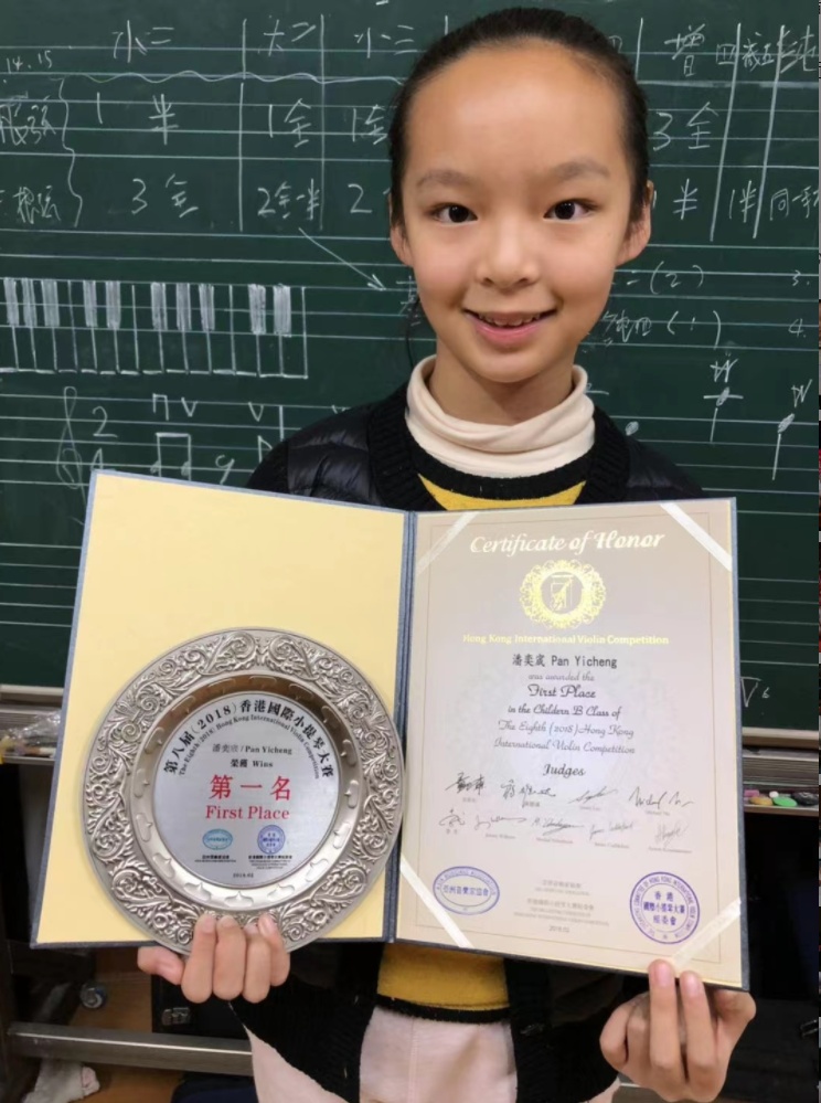 “我在这里学小提琴有十年的时间。当时乐队刚成立的时候就加入了,现在是小提琴首席。虽然学小提琴很艰辛,但每当听到自己演奏的声音就会感到很享受、很幸福。”金山区学生交响乐团首席、金山区世界外国语学校七年级学生潘奕宬表示,她曾获得过2018香港国际小提琴比赛总决赛第一名。