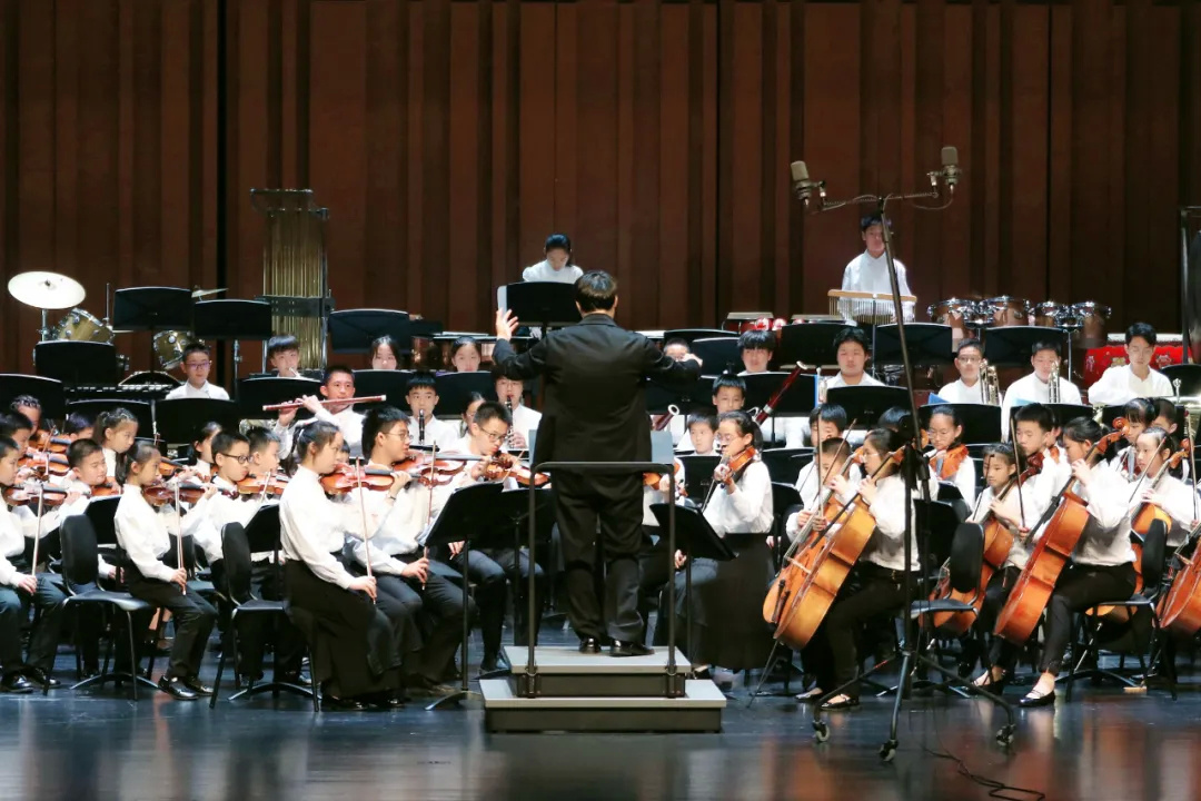 周悦的想法和张世光一拍即合。在周悦的牵头下,到2012年,第一支弦乐团成立,后来又经过了几年的发展完善,在区青少年活动中心管乐老师曹佳乐及区内外众多管乐老师的共同努力下,2016年,金山区第一个学生交响乐团终于成立。这期间,包括邵正川、黄陆岭等很多80、90后青年教师和专业人才的引入,为乐团的建设增添了很多新鲜力量。