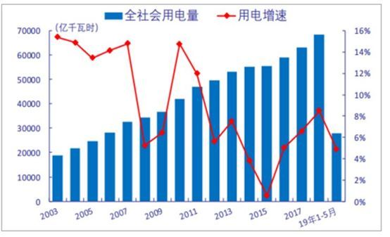 图2 我国社会用电量汇总(根据网上公开资料)