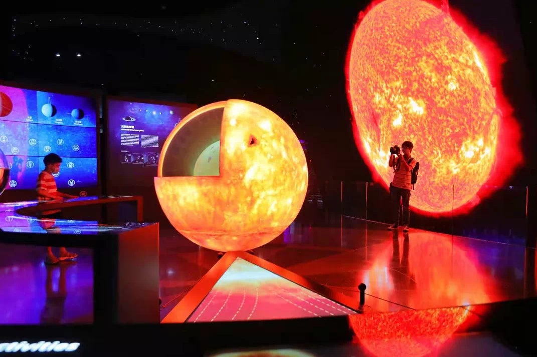 “我们与上海天文馆天文研究中心主任林清等一起,在设计方案上修改十几稿。”陈颖说,“讲好科学故事,又要触动观众心灵,实现建设国际顶级天文馆的目标,是馆方布展人员奋斗的方向。”