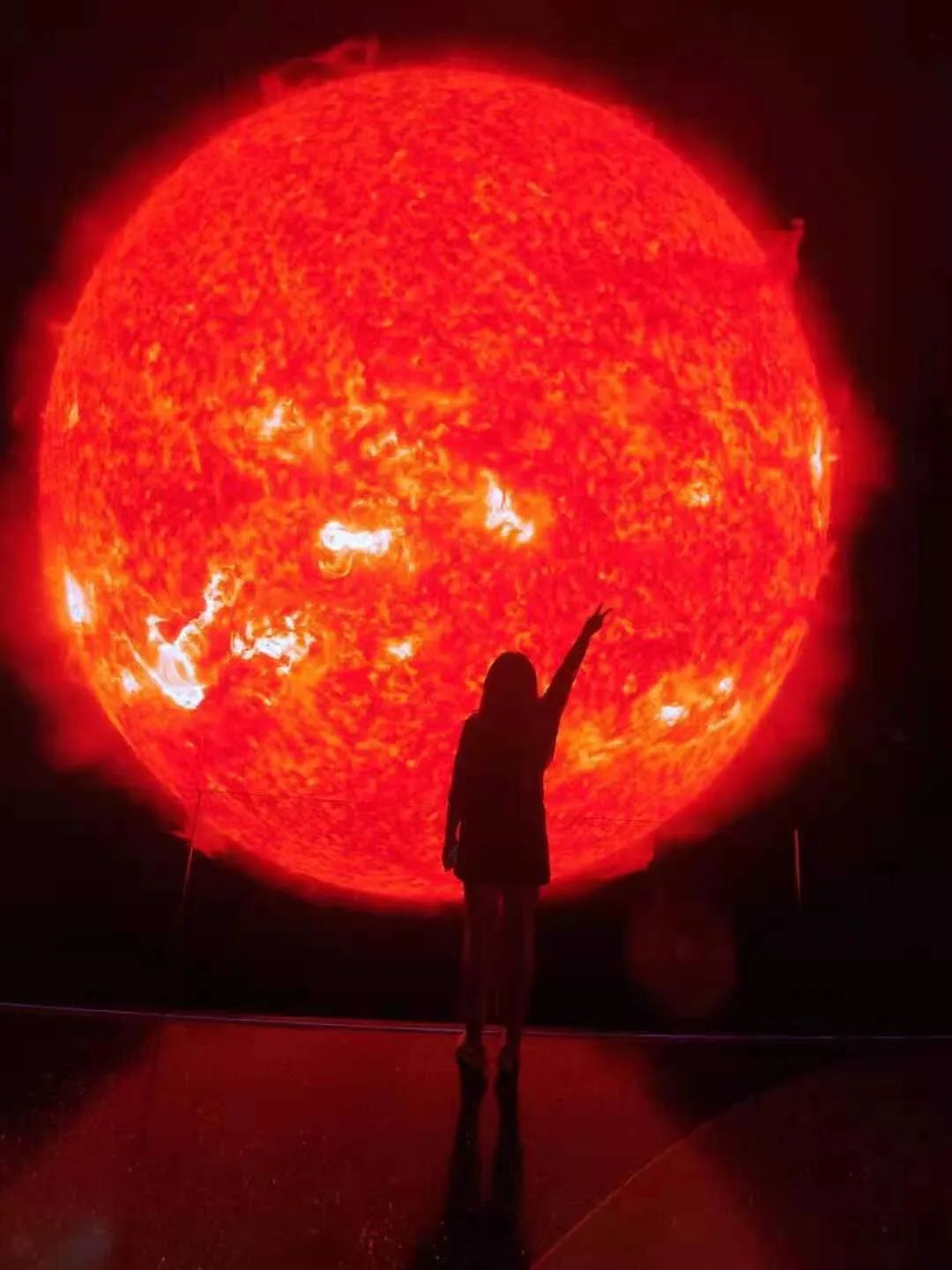 上海天文馆的压力测试共进行4天,在主展区之一的《家园》内,与地球、月球做成球体模型不同,太阳的影像是用一块6米×6米LED大屏来展现的,而这一“别出心裁”的设计,立刻成为观众最喜爱的打卡拍照点。