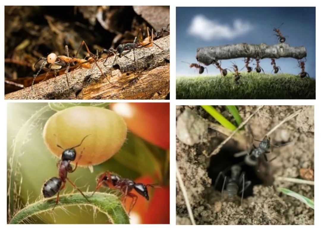 要求:参考图片画出你想象中有趣的“蚂蚁故事”。运用线条能表现蚂蚁的外形特征,能通过不同的空间布局、组合(可以是地下)表现故事情节。