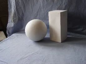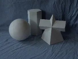 内容:立方体、圆柱体各一个组合;背景为浅灰色衬布。