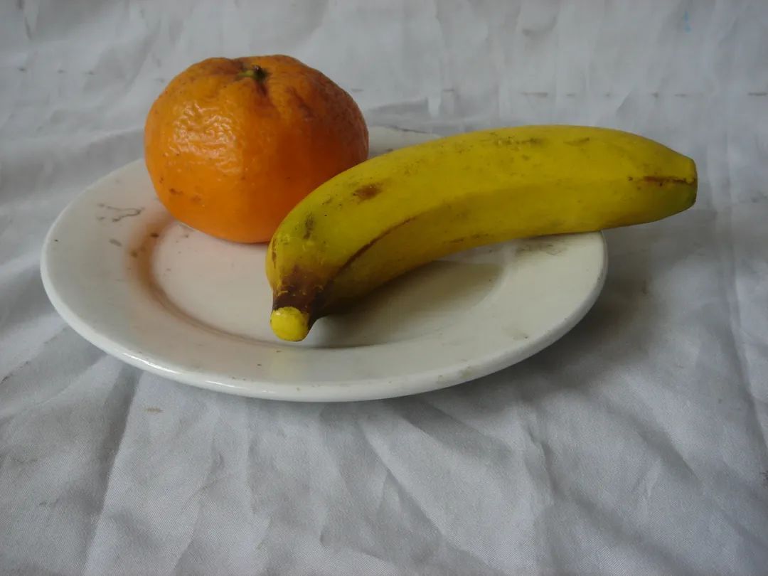 内容:白色衬布一块;桔子、香蕉若干;白色盘子一个。