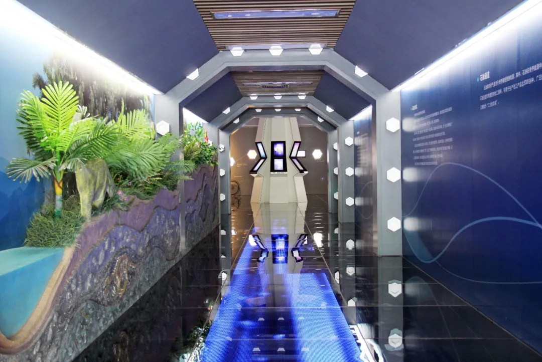 石油的形成展厅,通过“石油通道”再现石油形成及勘探、开采、运输等过程。