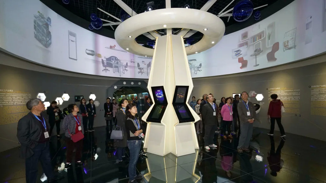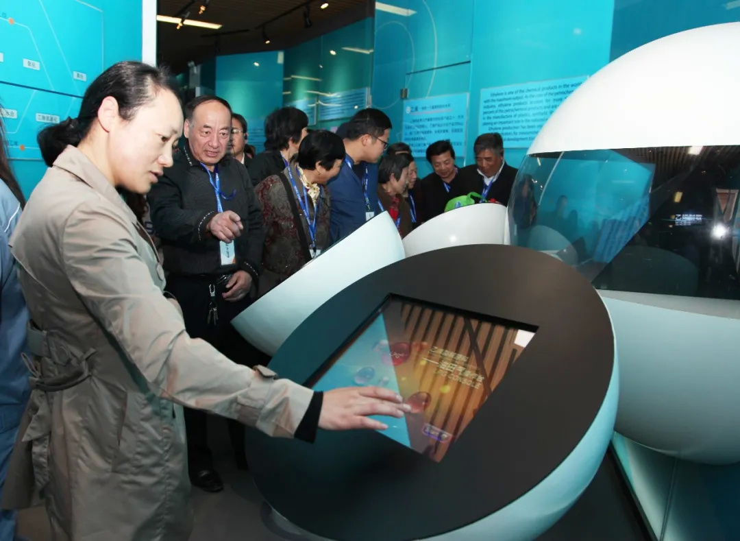 石化与生活展厅,通过“石油树与环幕视屏”“幻影成像”再现石油炼制过程。