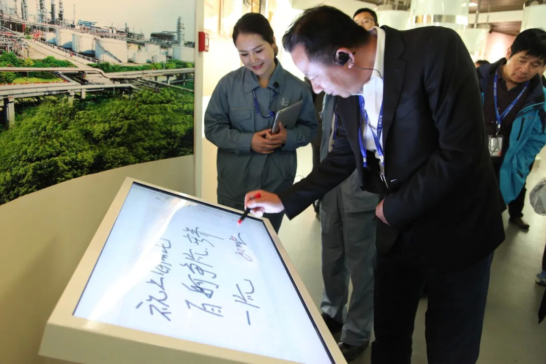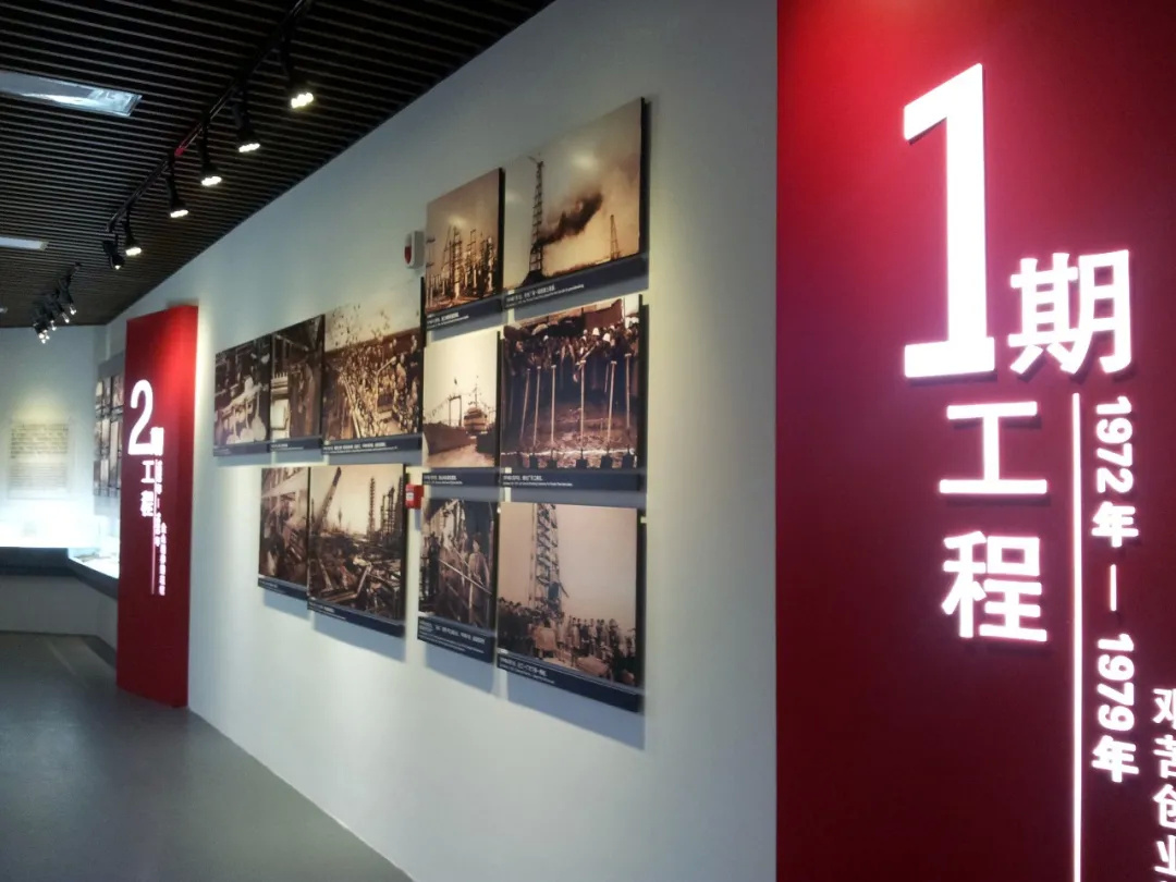 历史沿革展厅介绍了上海石化从5万民工围海造堤到一期至六期工程建设情况及上海石化股份制改制等重要节点。