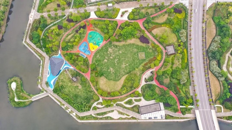 公园还特别设计了一条健身环道和一条滨水休闲步道,使整个公园交通系统彼此联系又各自分立,实现公园东西片区一体化。公园在交通流线设计上划分了四个等级,使整个公园的步道都进行串联,可以方便游客到达各个活动区域,满足行人散步、赏景、休闲的需求,最终形成“一主环,二次环”的圈层结构。
