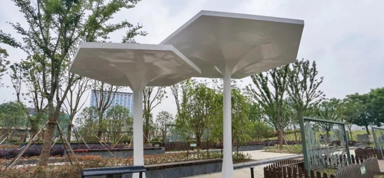 除了进行整体布局重塑,项目还重新规划了公园内的人行道景观,在保留原有树木的基础上,增加花坛及绿化。利用视线引导的设计方法,有节奏地布置近景、中景、远景,布置出层次丰富的景观视觉通廊。此次改造还融入了泥城文化,在公园入口处布置泥城文化展示区。