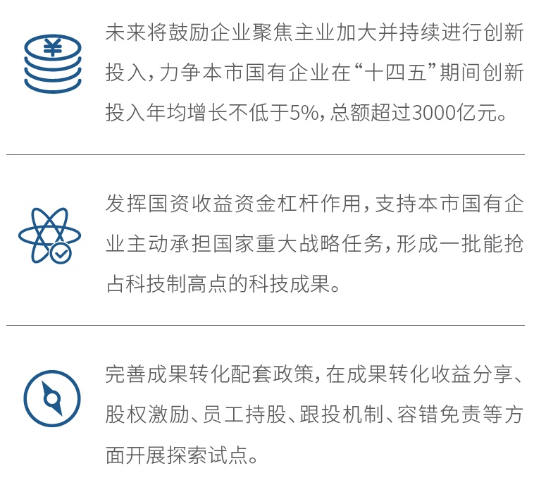 推动国企体制机制改革,激发创新活力。上海集聚了庞大的国企资源,国企孕育大量成果和产业需求。