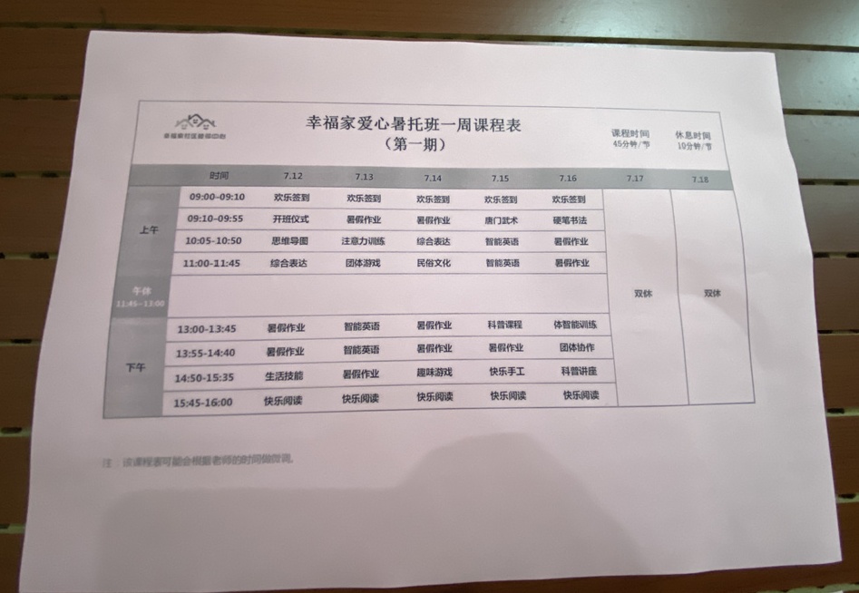 幸福家爱心暑托班负责人刘珠燕说:“暑托班整个课程的设计比较全面,考虑到孩子们的身体、心灵等需求,多方面、多元素地来为孩子们做一个规划。可能还会邀请到一些优质资质的科普老师、非遗传承老师,来为孩子们在暑期内传授一些有特色的课程。希望孩子们能够通过暑期学习,在生活习惯、学习习惯等方面都有所提升,促进全方位成长发展。”