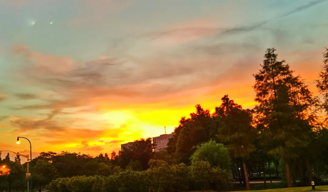 记者先后拍摄到图书馆上空的醉美,