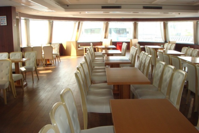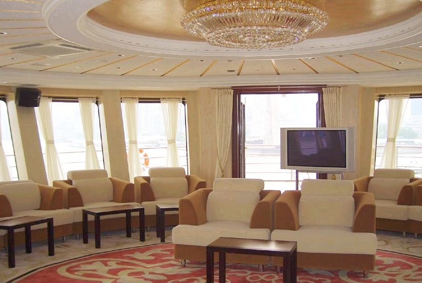 该船为2010年上海世博会专用船之一,全船采用玻璃幕墙结构,能大角度向游客展示浦江两岸的秀美景色。进入船体有个典雅宽敞的签到台,船体两边玻璃通透,装修与家具摆设在灯光的辉映下,呈现出豪华,尊雅的气息。