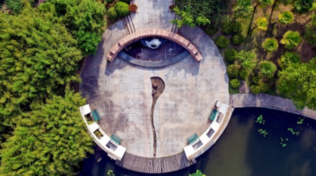 夏日炎炎,在关院避暑,你一定不能错过青莲湖畔的小亭。小亭前是恬静的青莲湖,湖上坐落一座小岛,树色苍翠,群鸟栖息,不时掠过湖面;小亭后,是环绕着青莲湖的长道,道旁青梅结果,柳枝飘拂,花草飘香。坐于亭中,携书一卷,自是清凉。