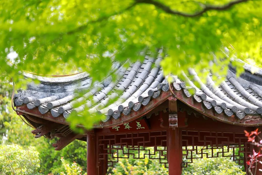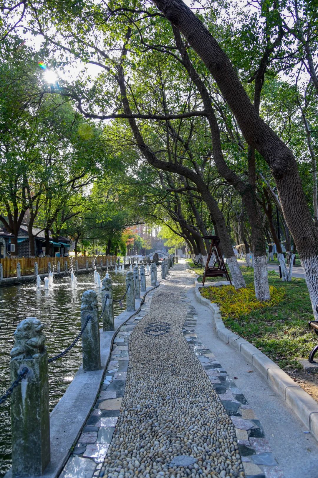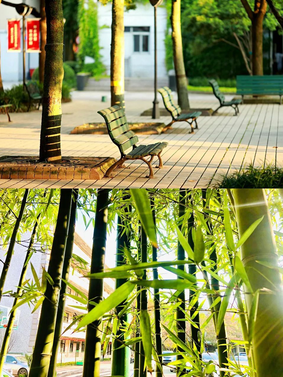 青葱瞬花遒茂,闵行校区自强园,修竹清池,斑驳颜色,显露厚重历史。
