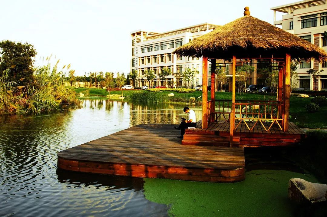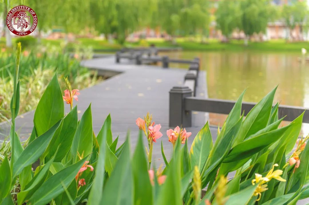 旅专校园的休闲实训中心除了用于日常教学实践外,也是师生们避暑纳凉的好去处。遍布花朵的栈道曲径通幽,鸳鸯野鸭自在嬉戏的湖边清凉欢乐,这些都是“景校合一”的旅专校园里经典的夏日景色。
