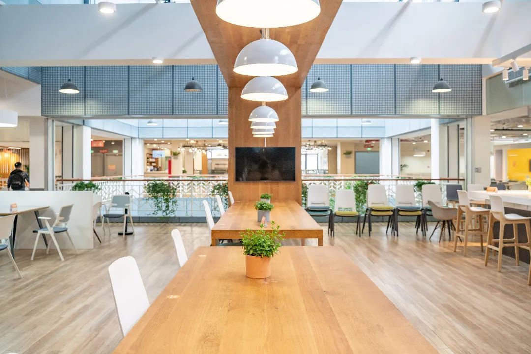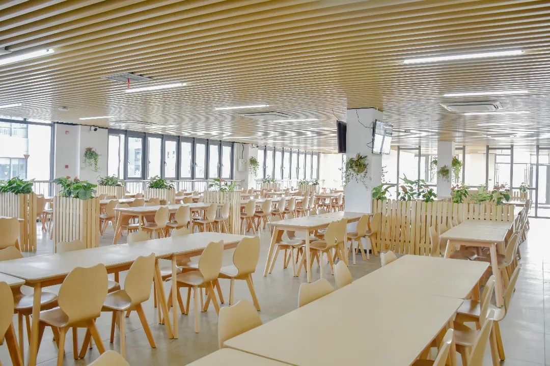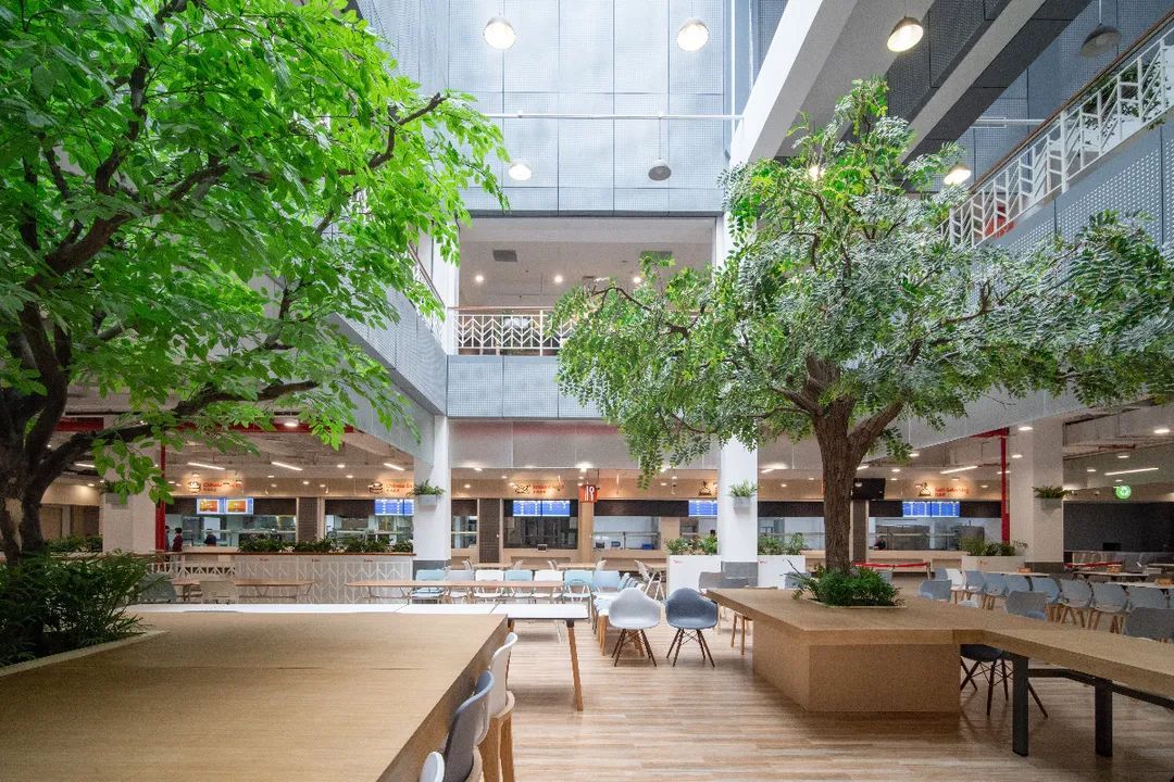 在复旦大学邯郸校区的北区食堂,师生们在享用美食之余,还可以在这片空间完成自学、小组讨论、课题研讨、沙龙派对、社团活动、厨艺教学与展示等等丰富的学习社交活动,而且这里的空调全天开放哦!