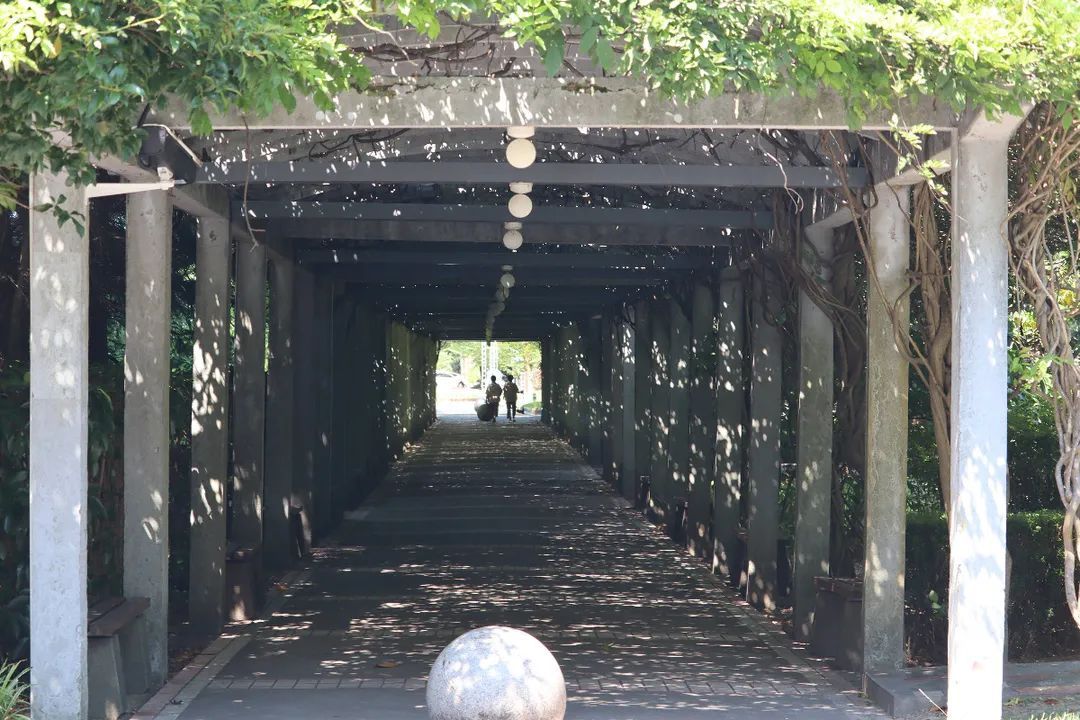 当看书久了,想要舒展一下疲倦的身体,这时候沿着校内的紫藤长廊走一走,拥着绿荫遮蔽带来清透的风,夏日的洒落抚慰了不安的心,好不惬意。