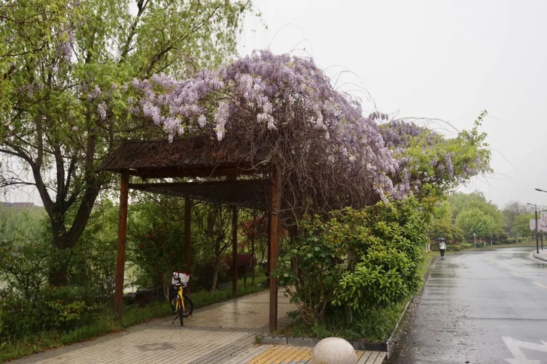 夏天傍晚,太阳西落。湖边紫藤花的藤蔓爬满整条花架,组成一条梦幻的“时光隧道”。在湖边吹吹风、散散步、感受一下夏日的晚风与悠闲安逸的气息也太美好了。