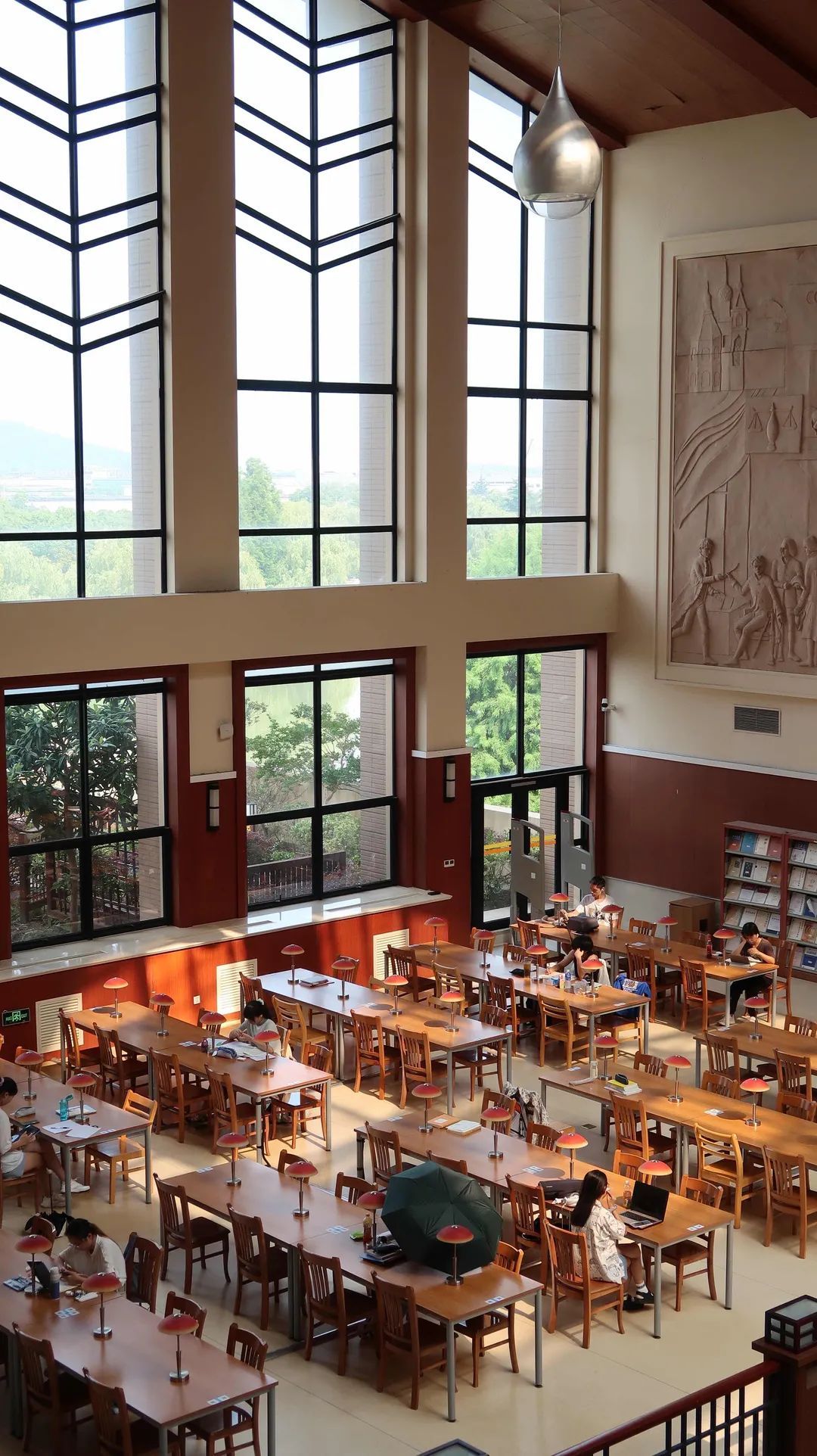 外面烈日炎炎,校园的图书馆却是避暑好去处。这里宽敞明亮,静谧舒适,师生静心沉浸在书香墨迹的怀抱里。