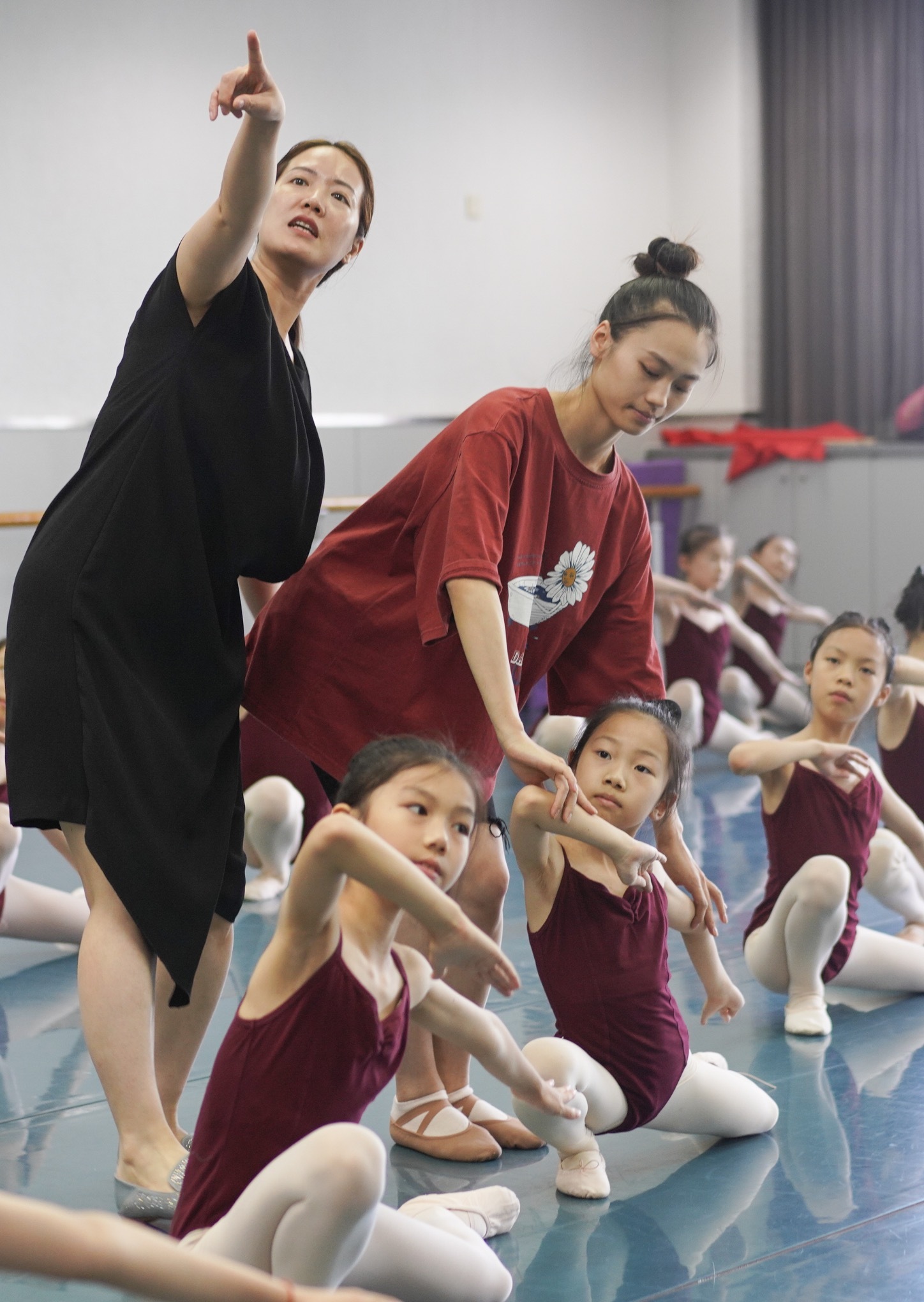 在舞蹈房,朱倩老师正指导舞蹈团的女生们排练建党100周年原创舞蹈剧目《埋在心中的一点红》,她们将在年底参加全国中小学生舞蹈展演。暑假期间每天集训2小时,对待舞蹈,团里的孩子都既认真又坚持,始终保持着相当高的出勤率。