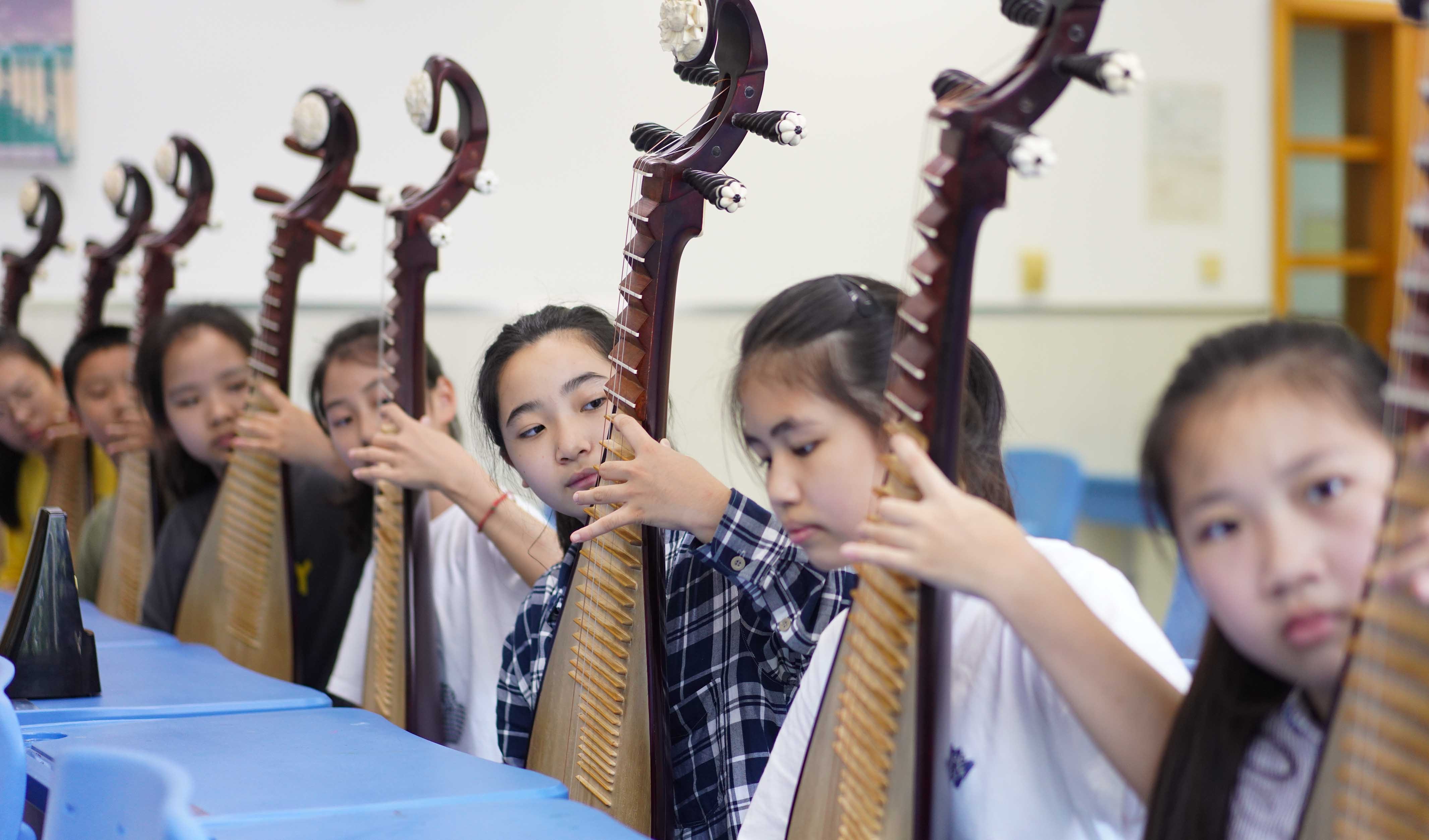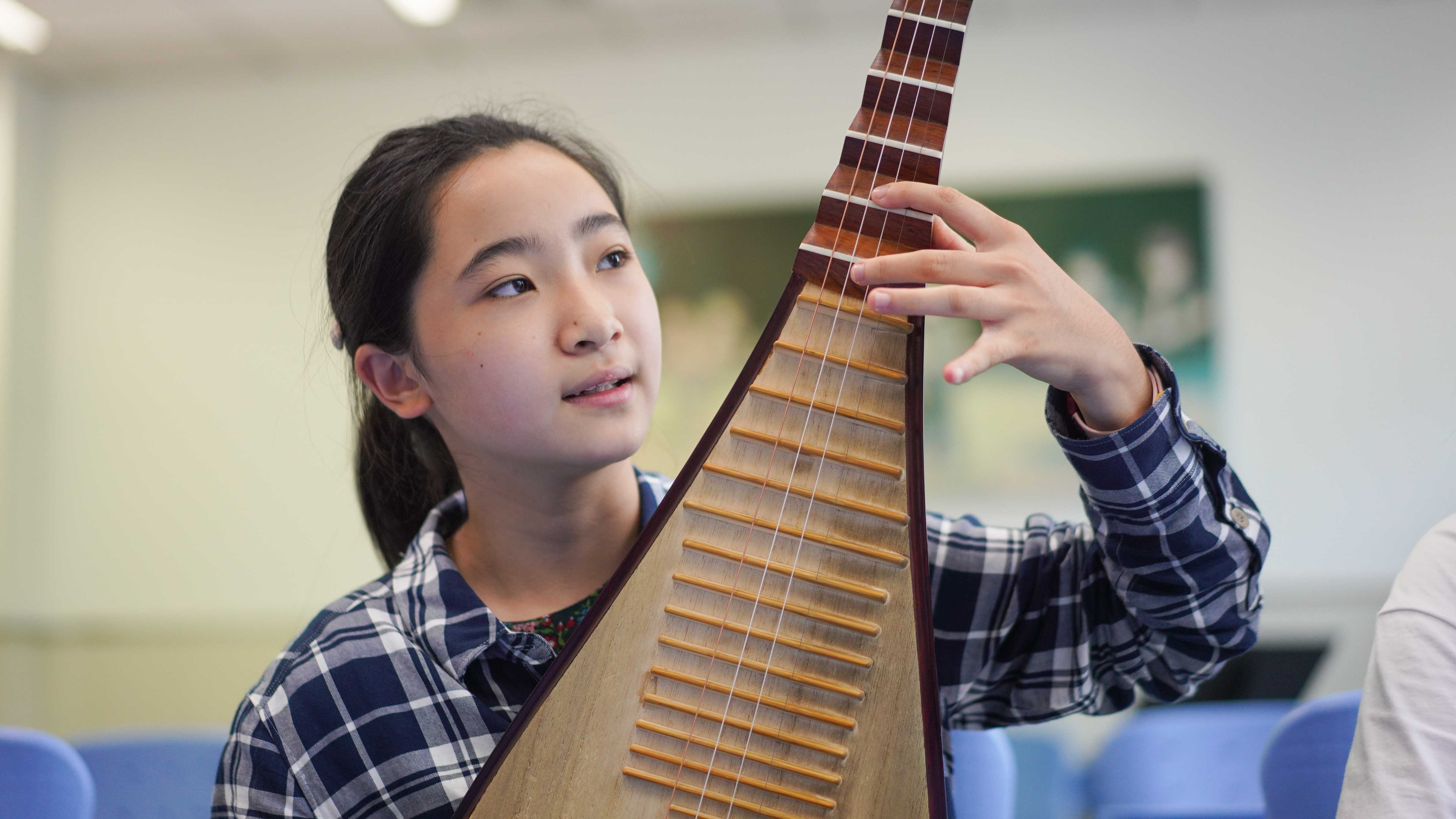 教室里,黄浦区青少年科技活动中心民乐团的学生们正在进行分声部练习。暑假期间,他们几乎每天都要在这里花上好几小时刻苦训练。手上长出茧子甚至破了皮,苦不苦?来自卢湾中学六年级的琵琶女孩王悠依回答地很坚定:“有了热爱,就不觉得苦!”琵琶音色清脆,曲调起伏,沉浸在传统乐器中,王悠依还想做个小小非遗传承人,将中华传统文化生生不息地传承下去。 就在今年5月,黄浦区青少年科技活动中心民乐团在第37届上海之春国际音乐节——“新时代·民乐声”民族管弦乐作品展演的舞台上,凭借《青春旋舞》得到全场最高分,获得一等奖的好成绩。