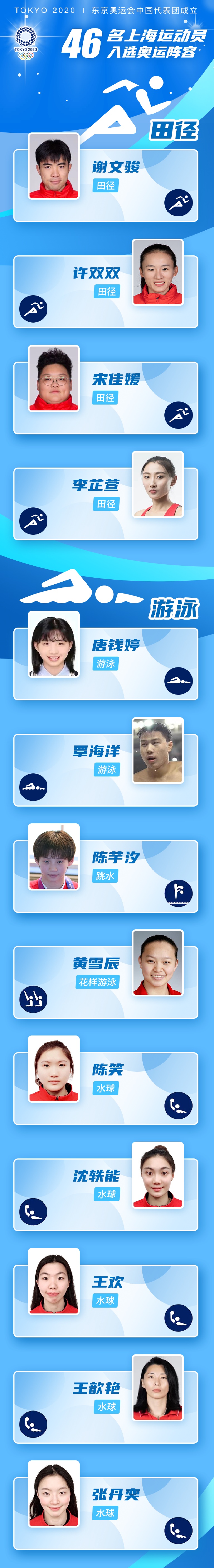 东京奥运会上海运动员入选名单公布,共46名运动员,15名教练员入选,6人担任本届奥运会技术代表和裁判员。