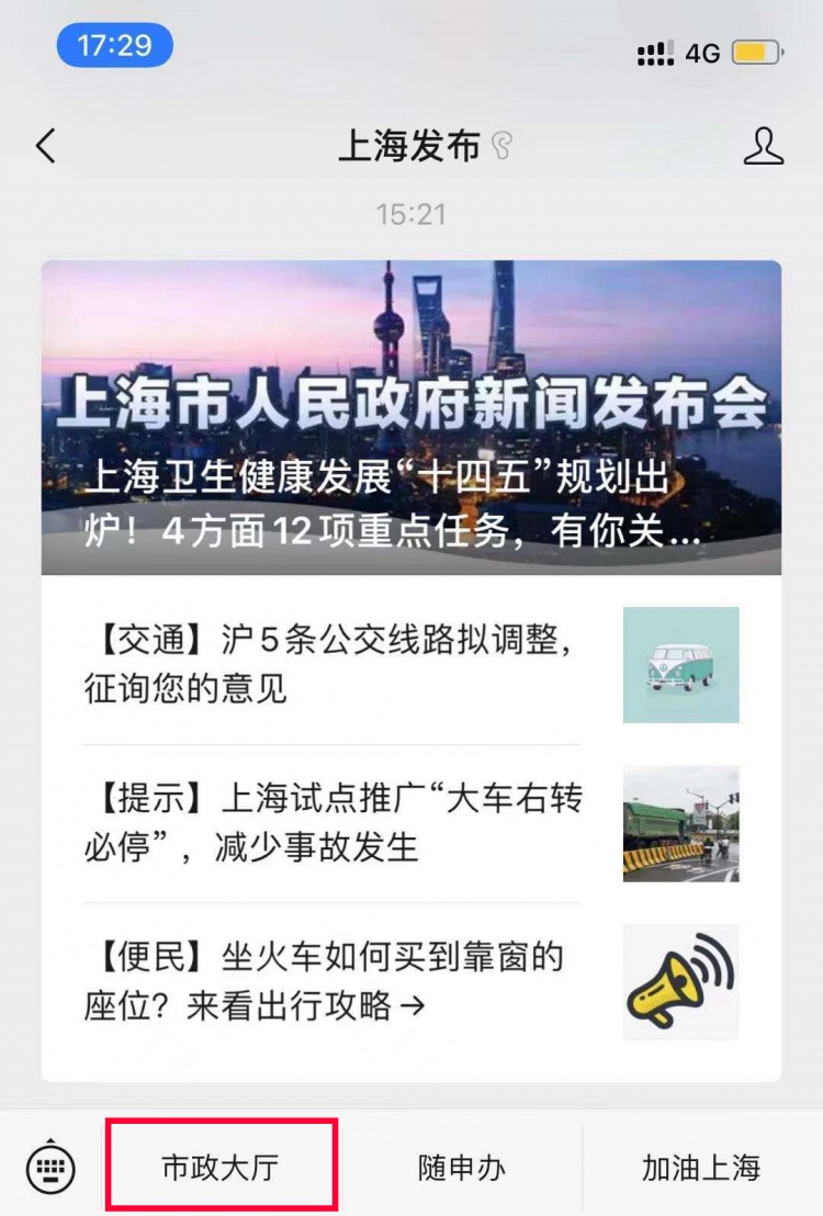 1、打开上海发布微信的“市政大厅”,选择小布与市公积金管理中心合作推出的“公积金查询”功能。
