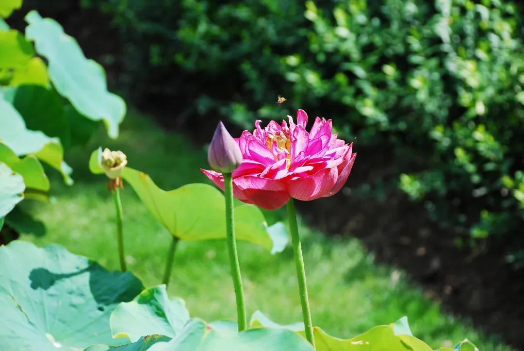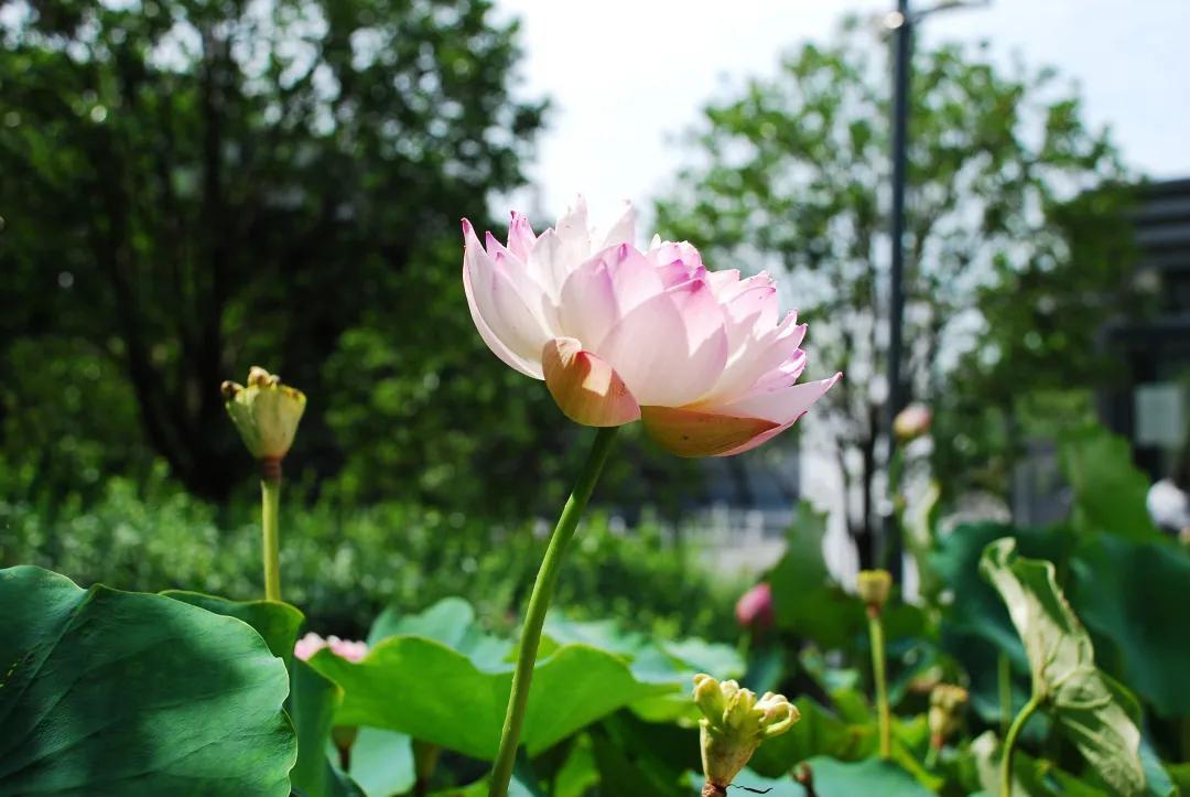 伴着夏日的微风,“清正廉明、香远益清”荷花展(2021年6月26日-7月26日)成为桃浦中央绿地的一抹亮色,100余个品种1500多盆精品荷花静待游客观赏。
